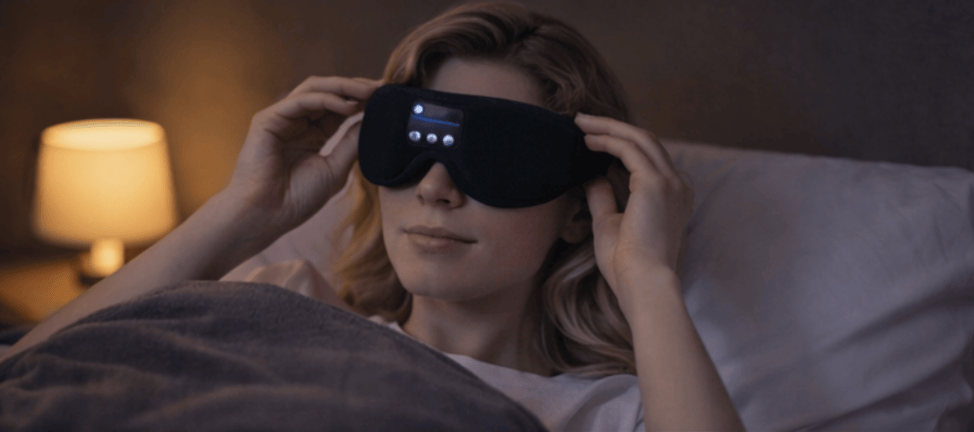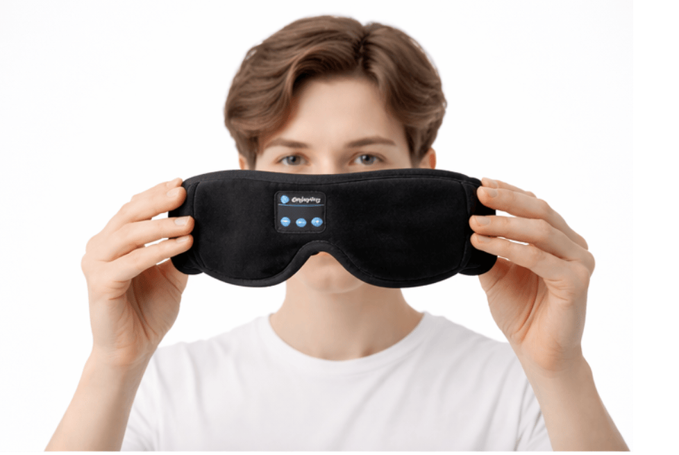 This Bluetooth sleep mask lets you listen to music or white noise wirelessly while blocking out light for better sleep. It’s soft, breathable, and comfortable to wear all night. The battery lasts up to 10 hours, and simple controls make it easy to use. The Bluetooth module is removable, so the mask is washable.